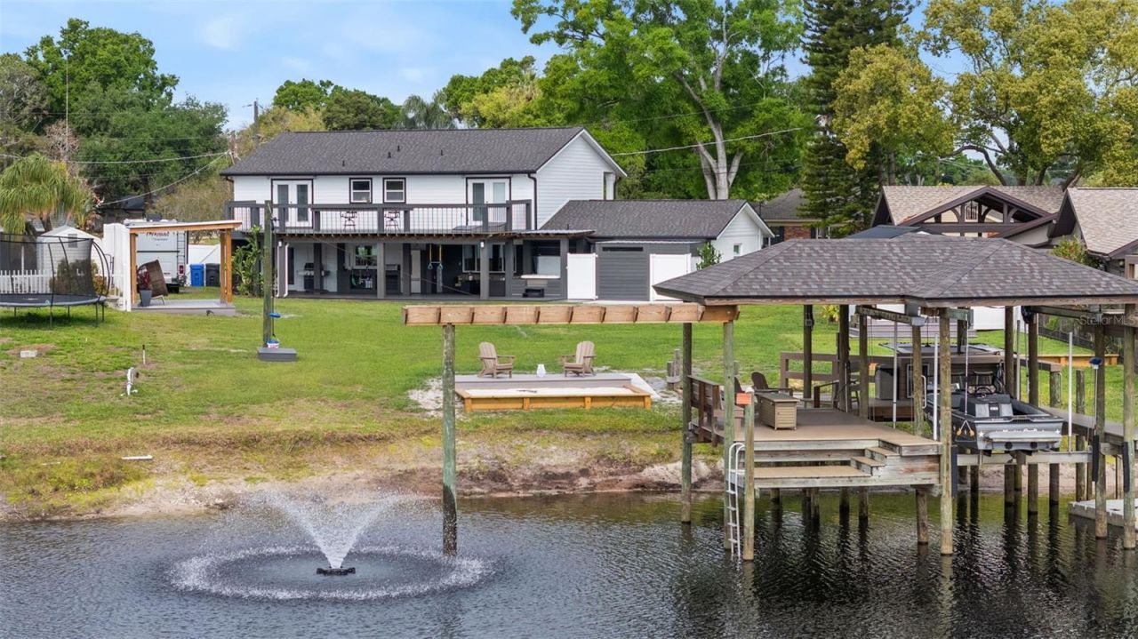 Rare opportunity on Lake Carroll-fully renovated lakefront home on an oversized nearly 17,000 sq ft lot with private dock, 12,000 lb boat lift, and resort-style outdoor living. Designed for both everyday living and entertaining, this property offers direct access to one of Tampa's most sought-after private ski lakes. Inside, the home features a modern open-concept layout centered around a showpiece kitchen with an oversized waterfall island and premium imported Italian range. The main living area is built for hosting, complete with a projector and drop-down screen, while large windows and multiple balconies capture peaceful lake views throughout. A full bathroom and laundry room are conveniently located on the main level, along with access to the two-car garage equipped with an EV charging station. Upstairs, the primary suite offers a private balcony overlooking the water along with a spacious walk-in closet. Additional bedrooms are well-appointed and positioned to maximize natural light and functionality. Recent upgrades include brand new impact windows and doors, updated electrical panels, full re-piping, a 50-gallon water heater, 2025 HVAC, new sprinkler system, Halo 5 filtration system, new driveway pavers, and new gutters. The outdoor space is designed as a true backyard retreat, featuring Trex decking, a full outdoor kitchen, fire pit, and multiple dedicated gathering areas-including a covered lakeside lounge and an elevated deck overlooking the water. A separate lakeside play area, including an in-ground trampoline, adds to the property's versatility for both entertaining and everyday enjoyment. A detached air-conditioned structure offers flexible space for a gym, office, or creative studio, complemented by a dedicated outdoor bath and a private hot tub and cold plunge setup-creating a true at-home wellness experience. Additional highlights include an RV hookup, and ample space for boats, toys, and gatherings. Opportunities like this on Lake Carroll-combining lot size, upgrades, and lifestyle-are rarely available.
