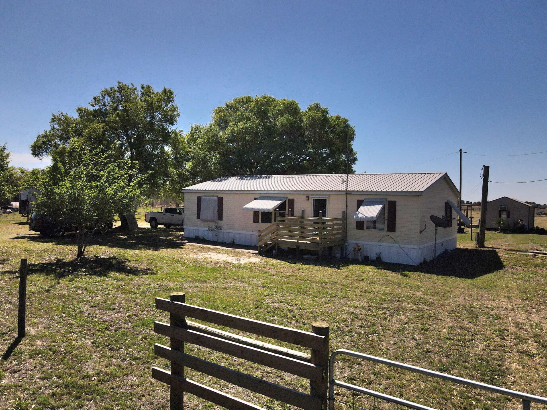 ~MOORE HAVEN~ This peacefully located updated 3-bed, 2-bath mobile home on 5 acres of agriculture-zoned land. New vinyl flooring & subflooring throughout, AC installed 2020, new skirting & freshly pumped septic. Kitchen includes all major appliances, gas stove, washer/dryer. Primary bedroom features a spacious closet. New front porch and a big back porch that overlooks your acreage. Fully fenced with heavy-duty fencing & 3 culverts. 20x40 pole barn with electric, 15x30 shed with bathroom & electric, plus 12x24 shed, as well as lawnmower shed. Two deep ponds, Orange & mulberry trees. Unlimited parking for trucks, trailers & equipment. Walmart Supercenter nearby in LaBelle. Move-in ready property-schedule your showing today! All Measurements are approximate.
