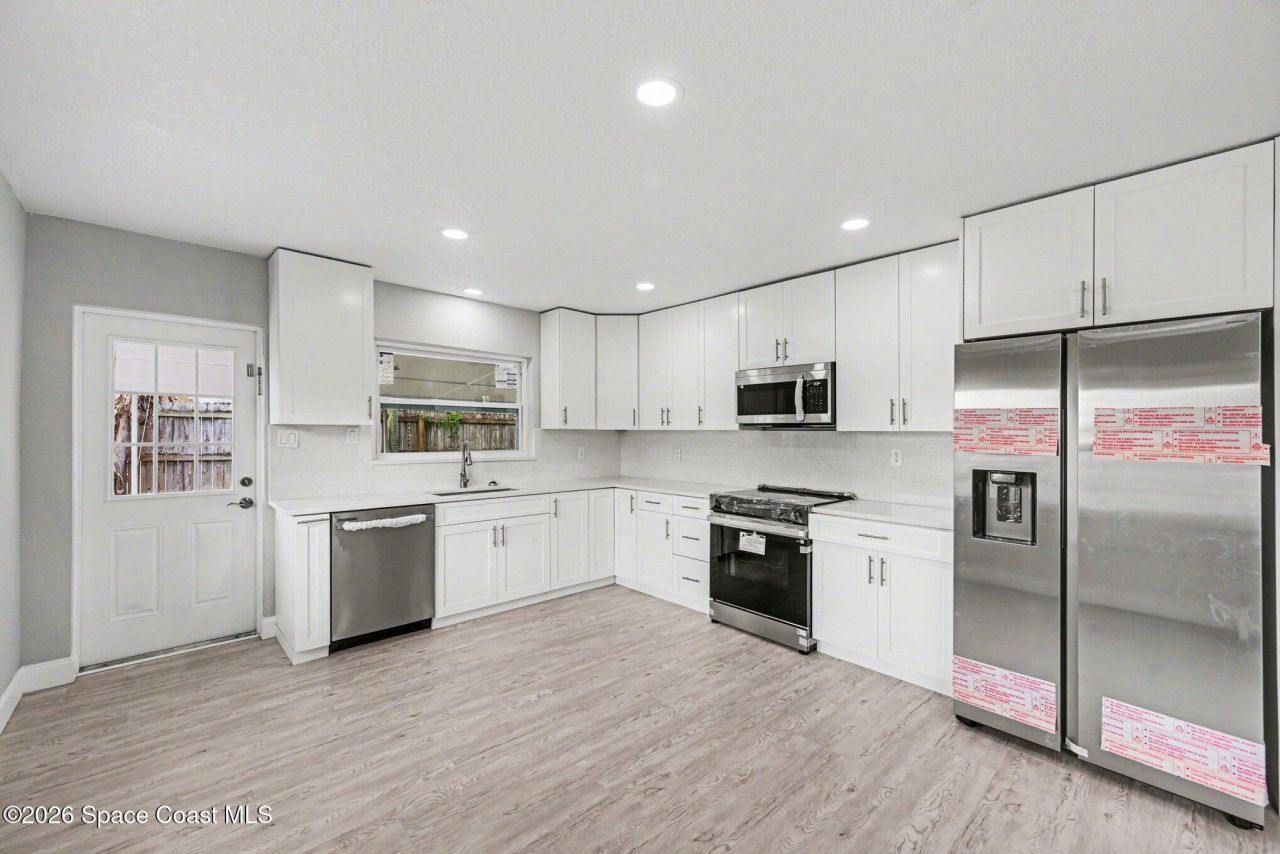 Welcome to this gorgeous 3 bedroom 2 bathroom corner lot home loaded with incredible upgrades & designed for comfortable, modern living. Every major system has been thoughtfully updated, giving you peace of mind & stylish finishes throughout. Enjoy NEW WINDOWS, New A/C system & new ducts, Updated plumbing, Metal roof.. The beautifully updated kitchen features new stainless steel appliances, sleek quartz countertops, modern cabinetry & contemporary LED lighting. Both bathrooms have been tastefully renovated with fresh fixtures and finishes. Throughout the home, youll find beautiful new vinyl flooring, fresh interior & exterior paint, new light fixtures & remote-control ceiling fans, creating a bright and inviting atmosphere in every room. Built in storage room in the backyard. Family-friendly neighborhood with NO HOA,. Close to shopping, beaches, restaurants & golf courses. Move-in-ready gem truly has it all