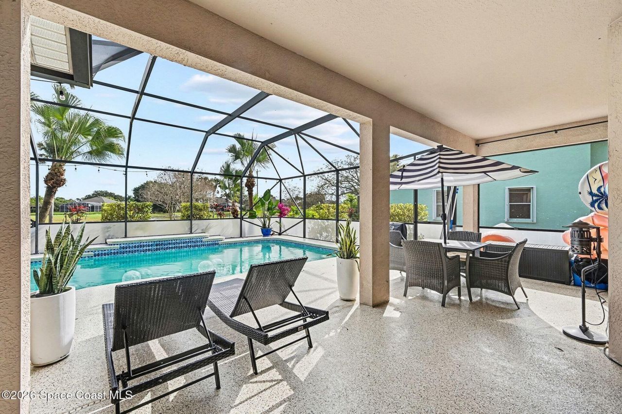 WELCOME to the heart of North MERRITT ISLAND, where SPACE COAST living meets everyday adventure. This spacious 4 BED | 2.5 BTH residence offers the rare opportunity to enjoy spectacular rocket launches right from your own backyard oasis! Inside a gracious kitchen flows seamlessly into the family room, showcasing golf course views, while separate living & dining areas create the perfect setting for entertaining. The primary suite opens directly to a covered patio and SALTWATER POOL, delivering effortless indoor-outdoor living. High ceilings and a versatile floor plan include an upstairs bedroom & bath...ideal for guests or a private home office. Step outside to a tranquil setting, perfect for relaxing year-round. An oversized garage and circular driveway add both convenience and curb appeal. Residents also enjoy access to community tennis courts and a playground... and all just minutes from Blue Origin, Port Canaveral & Orlando. This home brings you the very best of FLORIDA living!